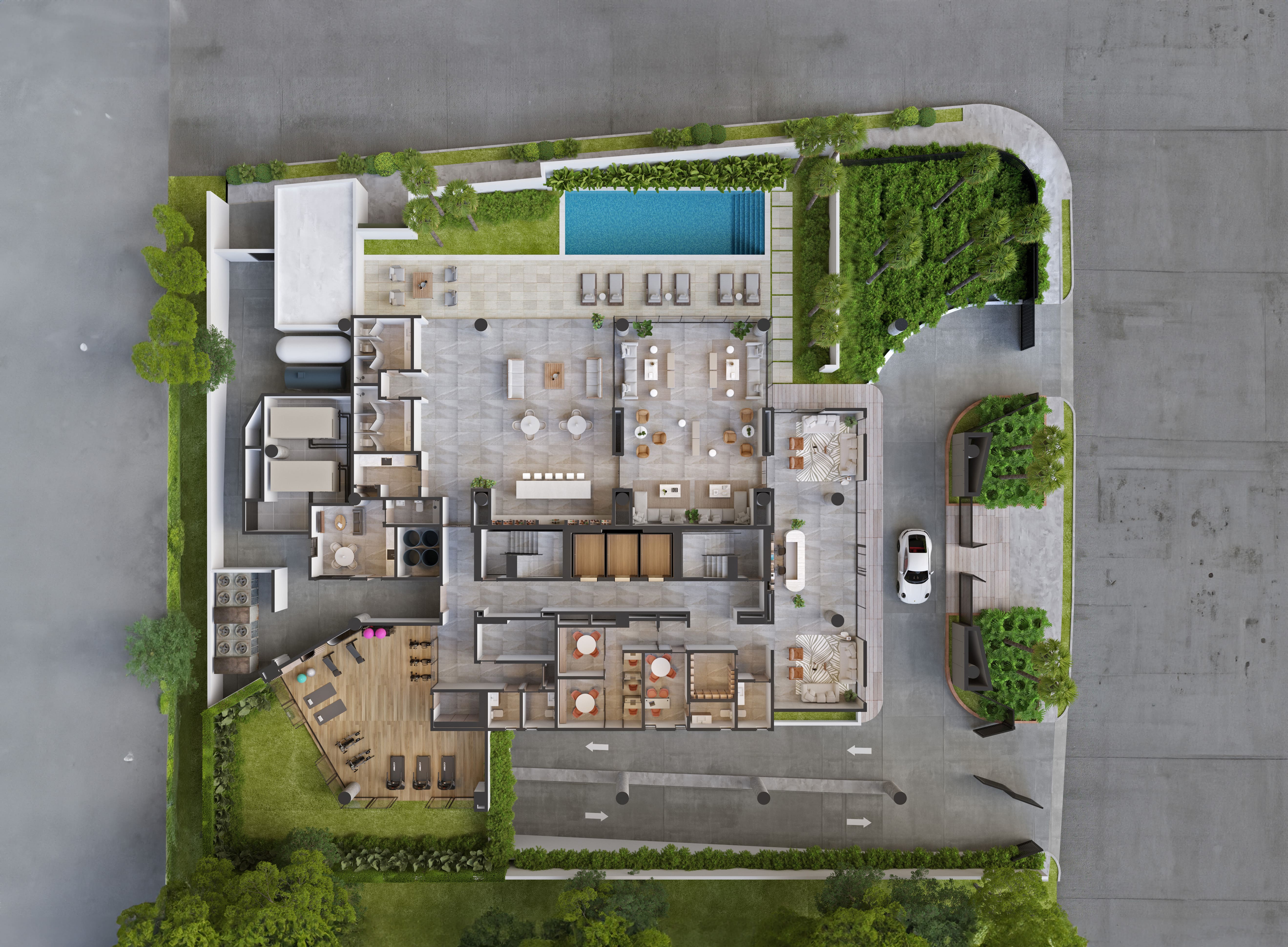 • Áreas Verdes en Piscina y Patio Interior en Gimnasio.
