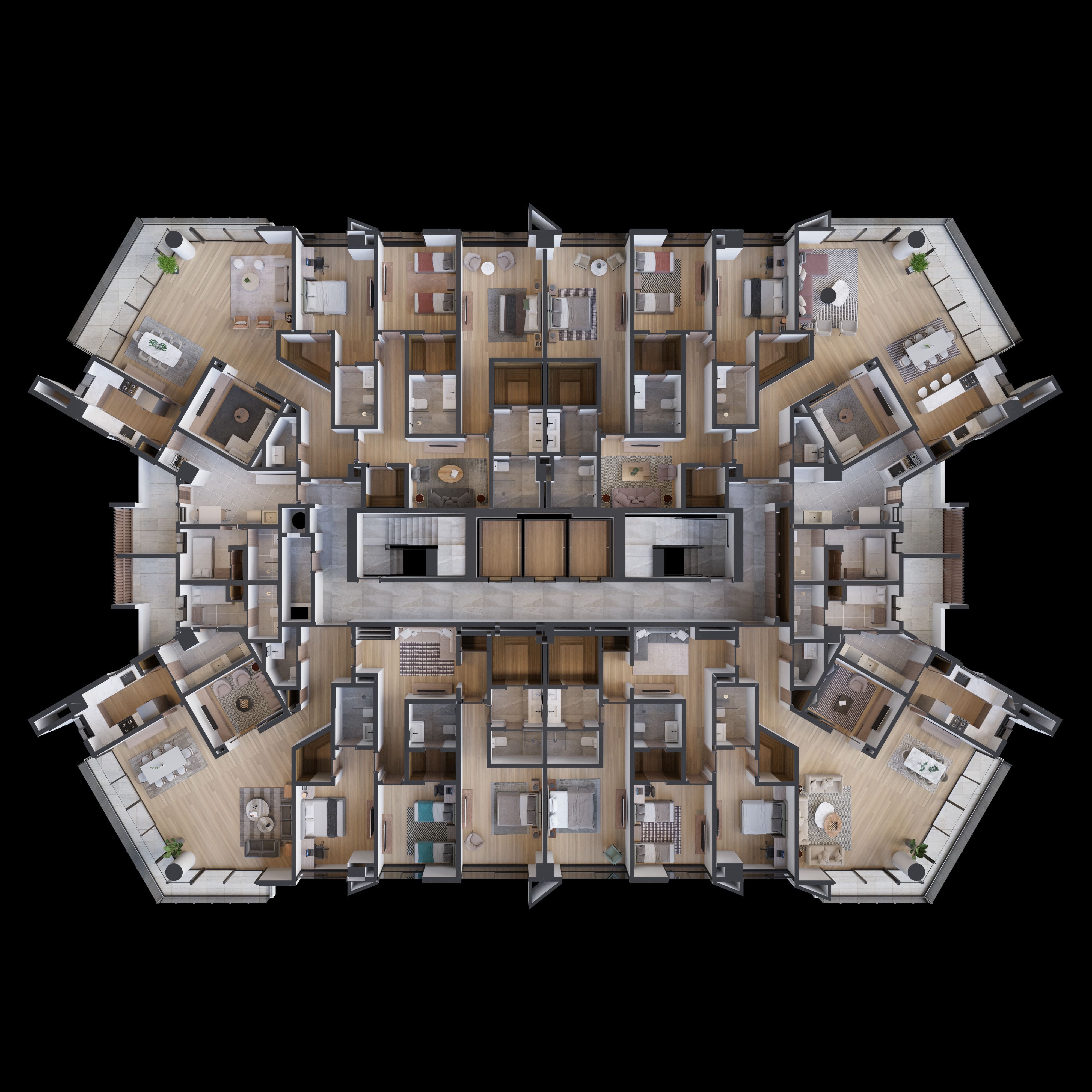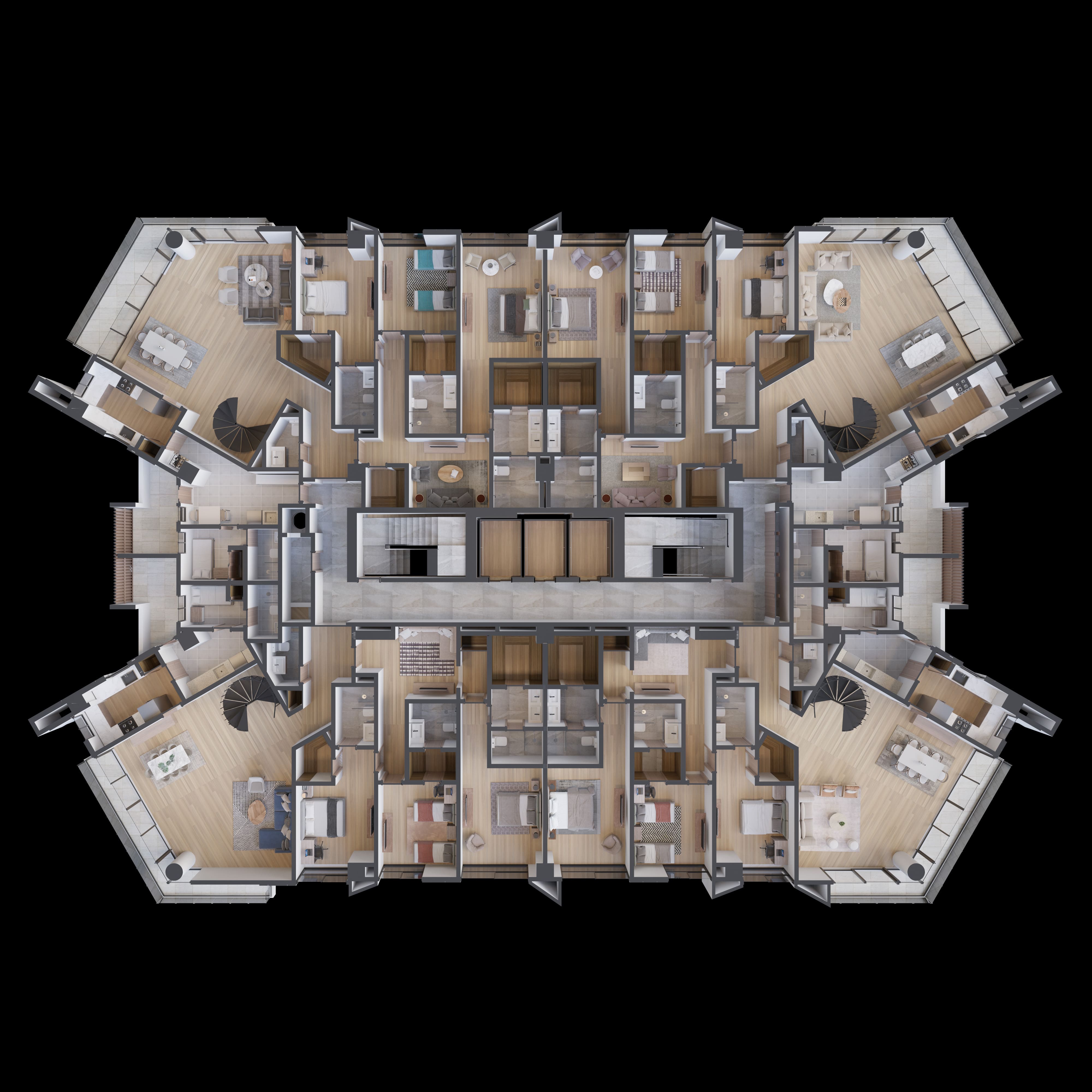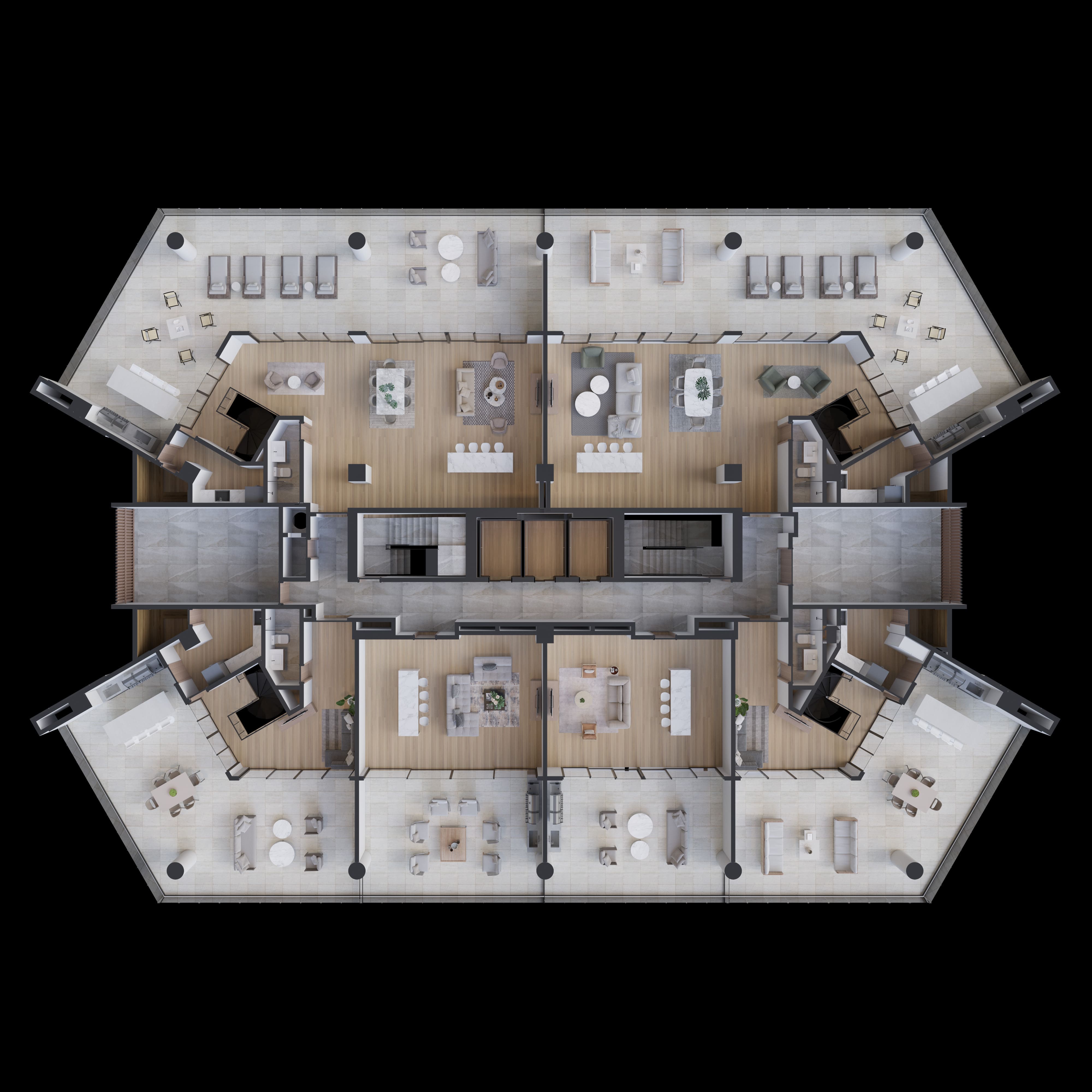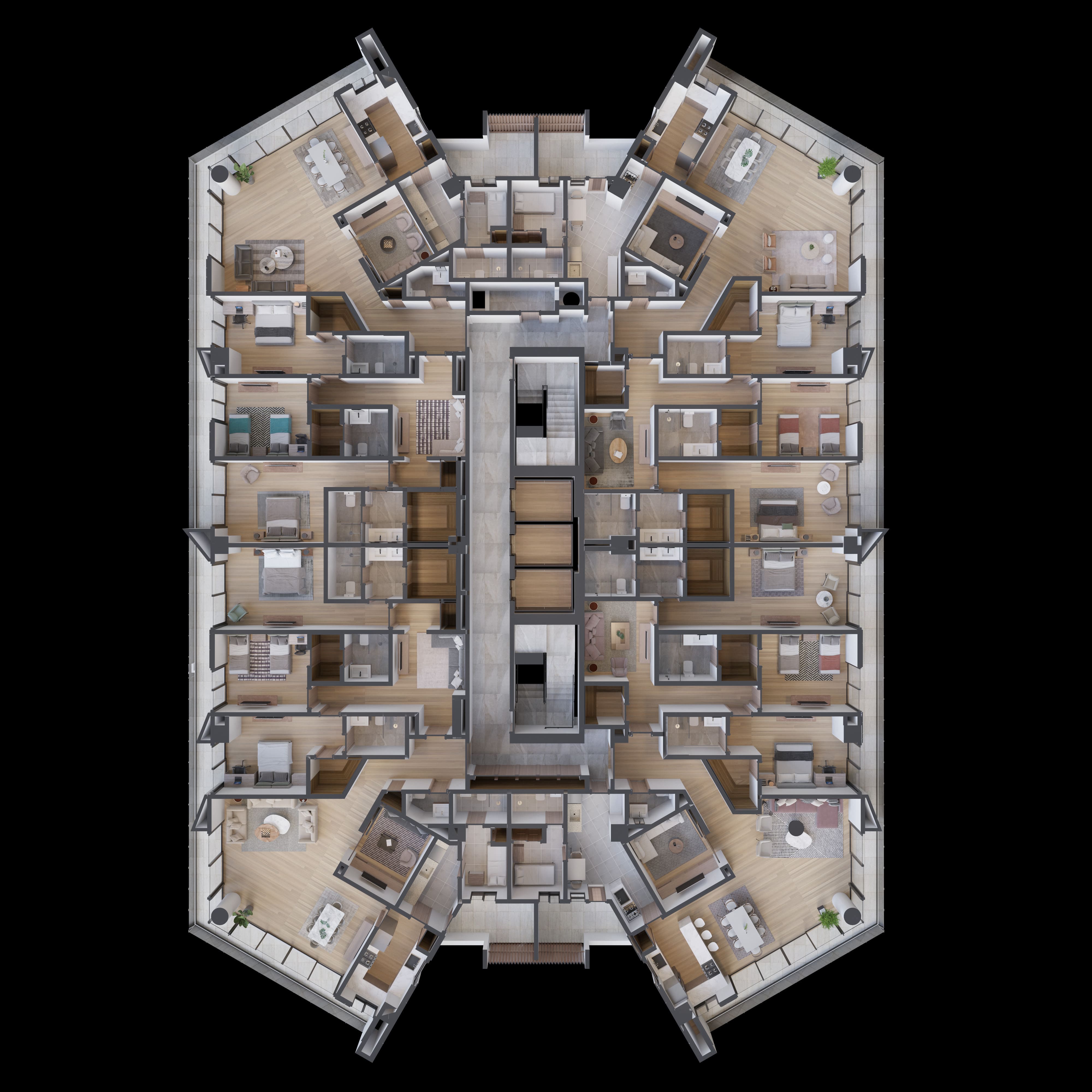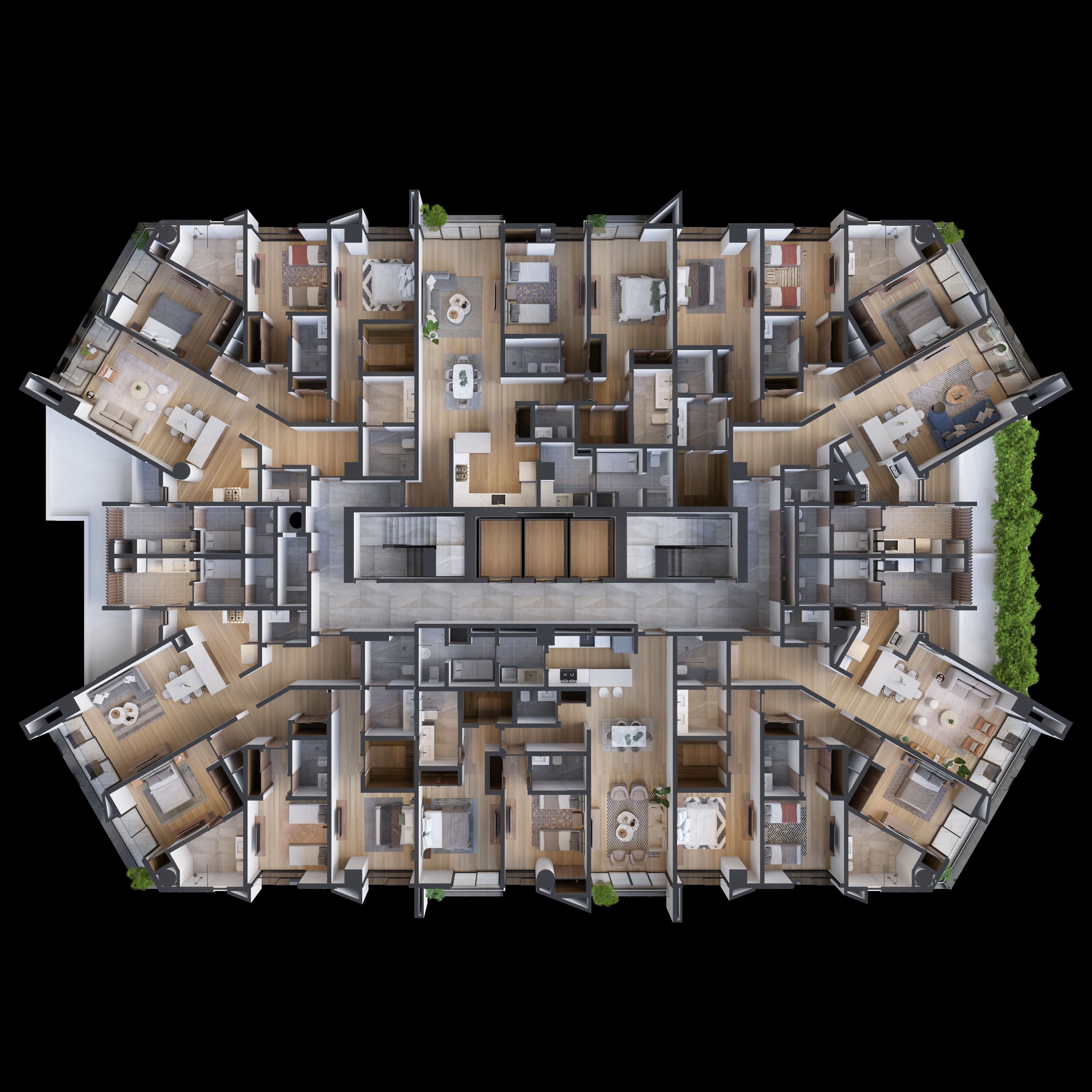 Experimenta el confort y el estilo de nuestros apartamentos de 2 y 3 habitaciones, que varían desde 141 m2 amplios hasta 305 m2 impresionantes. Cada unidad ha sido diseñada pensando en la calidad y la comodidad, garantizando un estilo de vida sofisticado y exclusivo.